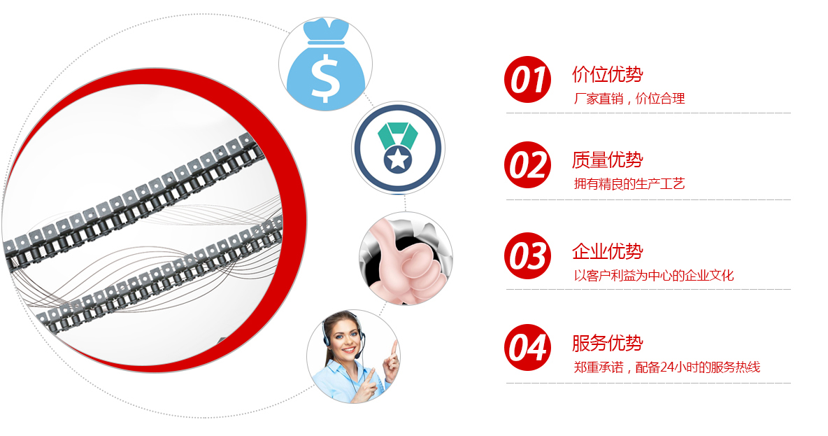1、链条产品有各种不锈钢、碳钢输送链条、双节距输送链条、空心销轴链条、不锈钢塑料平顶链、不锈钢精密滚子链、特殊工矿输送链、耐高温输送链条、非标链条、弯板非标链条、大节距输送链条、各种链条用滚子(材质碳钢、不锈钢)等。